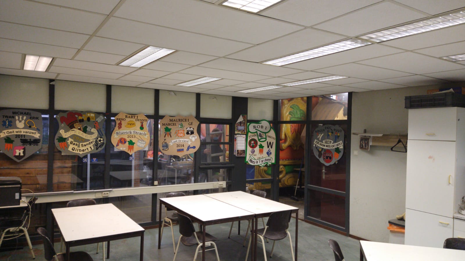 Tot slot is ’t plafond in de kantine auk weer hersteld, dus idderein kin weer in een verzörgde kantine aan de pekskes werke of schafte en koffiedrinke onder ’t bouwen.